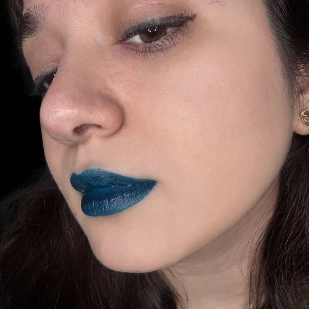 Gloom Shimmer is a dual-tone, color-shifting water stain with moody blue-green iridescence — vegan, long-lasting, and magically unique on every skin tone.